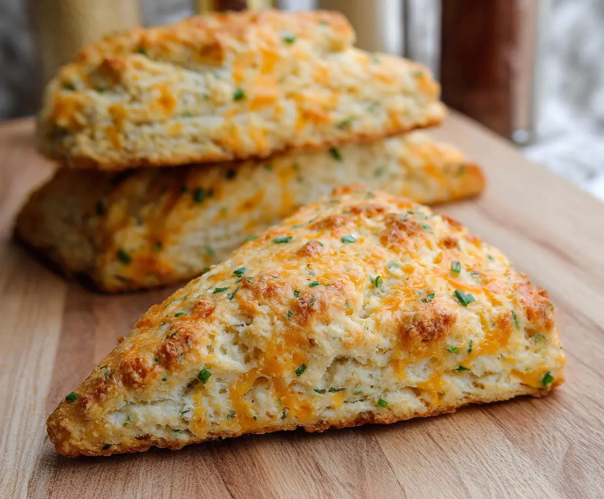 Enjoy your flaky, cheesy sourdough scones with the delightful flavor of fresh chives! Perfect for a cozy breakfast or afternoon snack! 😊