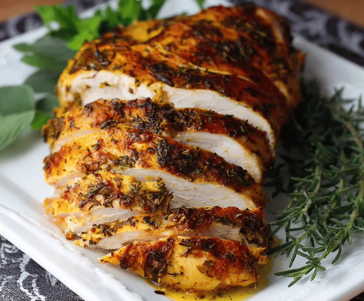 Enjoy savoring this tender, flavorful turkey breast with a beautifully seasoned crust. Perfect for family dinners or a cozy meal at home!
