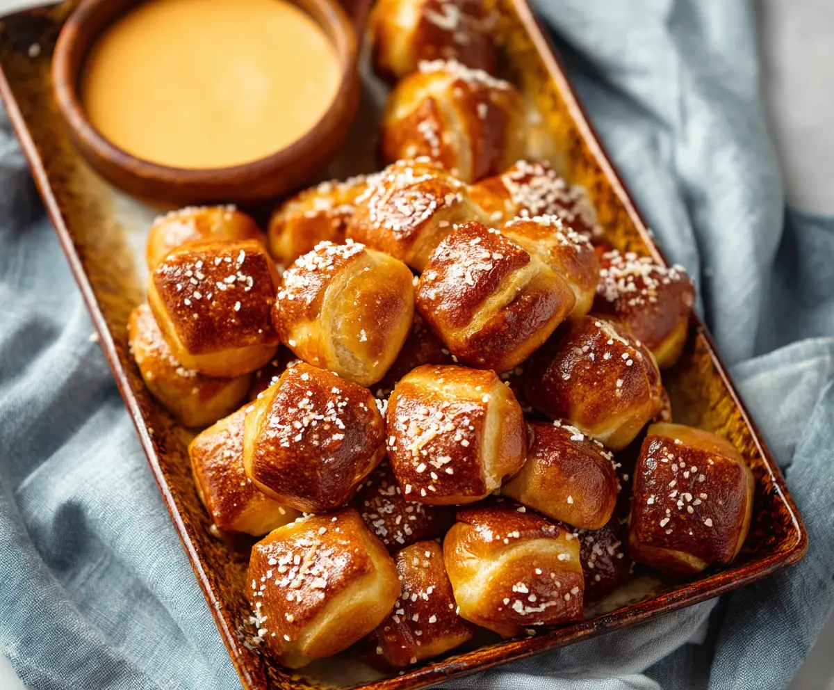 These soft pretzel bites are warm, chewy, and perfect for snacking! They’re golden brown on the outside and fluffy on the inside, making them a real treat.