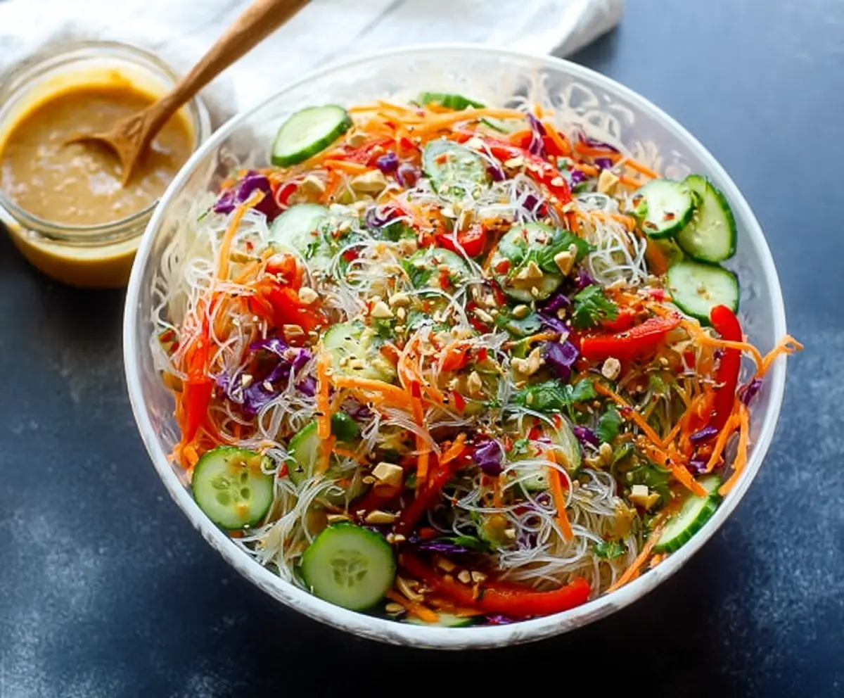 Enjoy your fresh, crunchy, and vibrant Spring Roll Salad with the bold flavors of the spicy ginger peanut dressing! It’s perfect for a light lunch or a refreshing dinner option.
