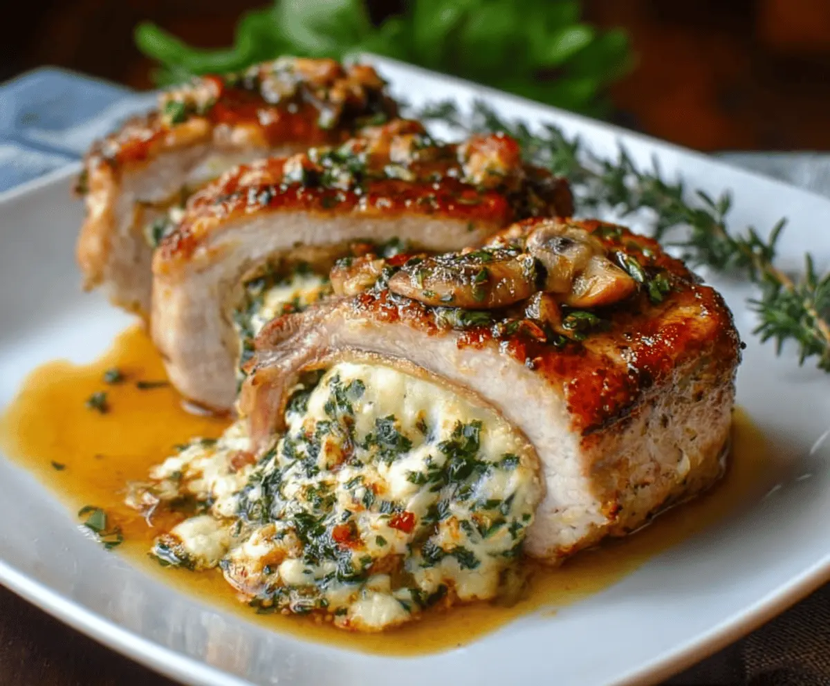 Once done, remove the stuffed pork chops from the oven and let them rest for a few minutes before serving. This helps keep them juicy! Garnish with fresh rosemary sprigs for a lovely touch.