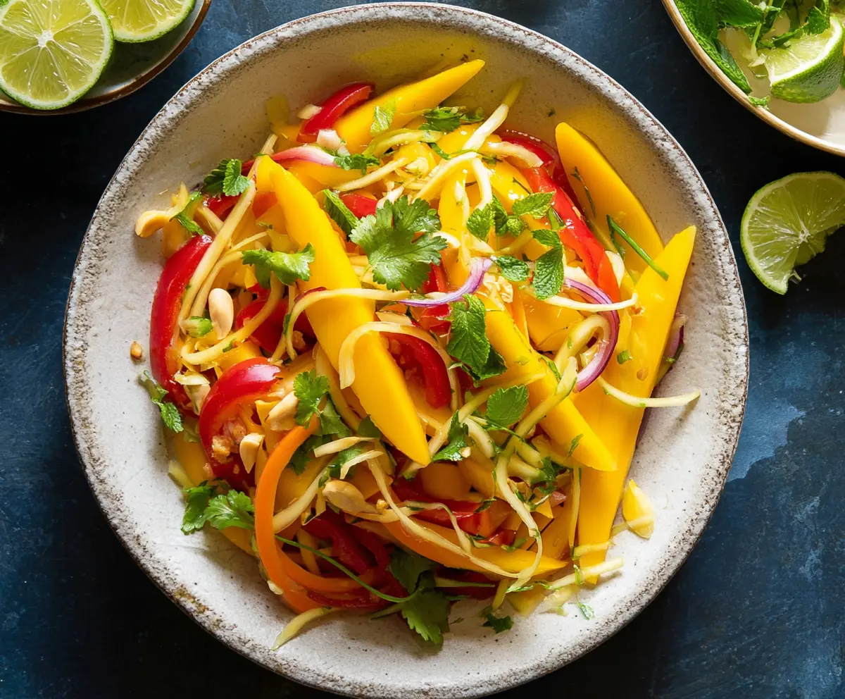 This Thai Mango Salad is fresh, crunchy, and super colorful! With ripe mangoes, fresh veggies, and a zesty dressing, it’s a tasty treat that brightens any meal.