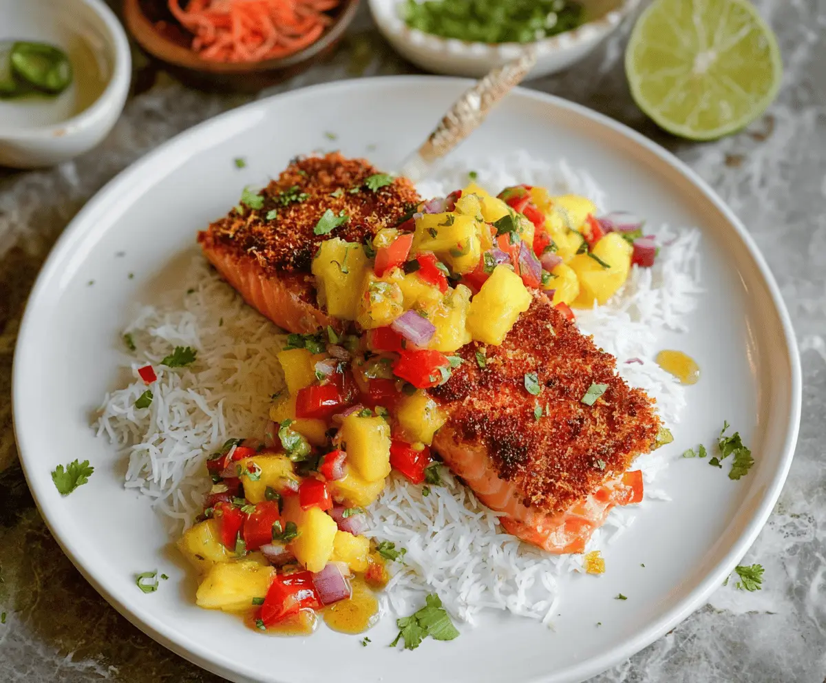 Tropical Coconut Crusted Salmon With Pineapple Salsa