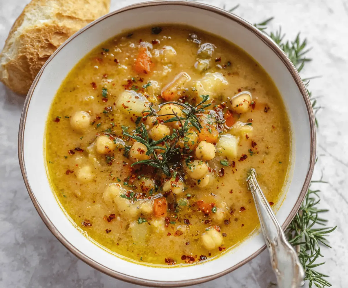 Ladle the freshly made soup into bowls. Garnish with additional whole chickpeas, a drizzle of olive oil, a sprinkle of smoked paprika, and extra chopped herbs for a lovely finish!